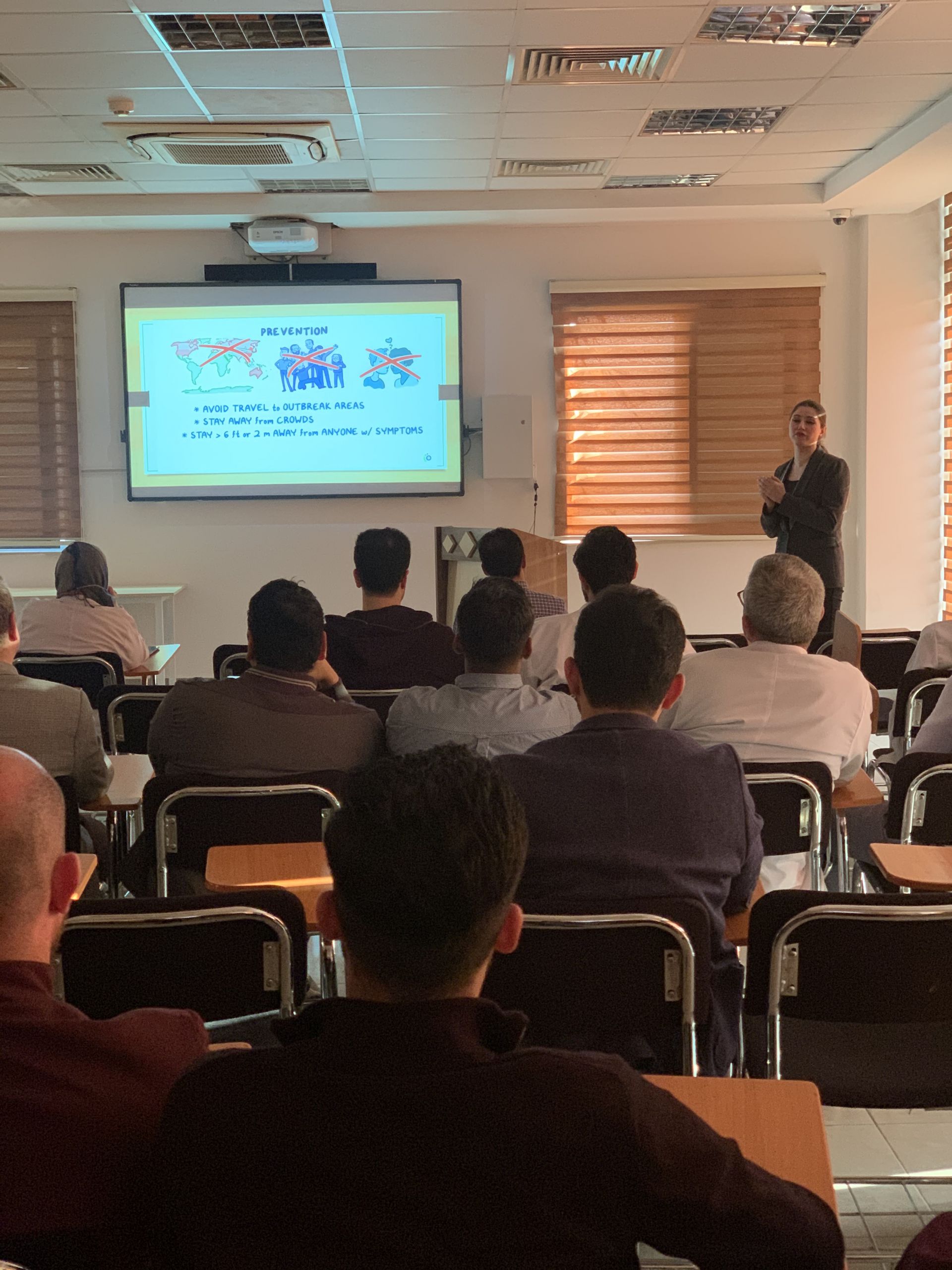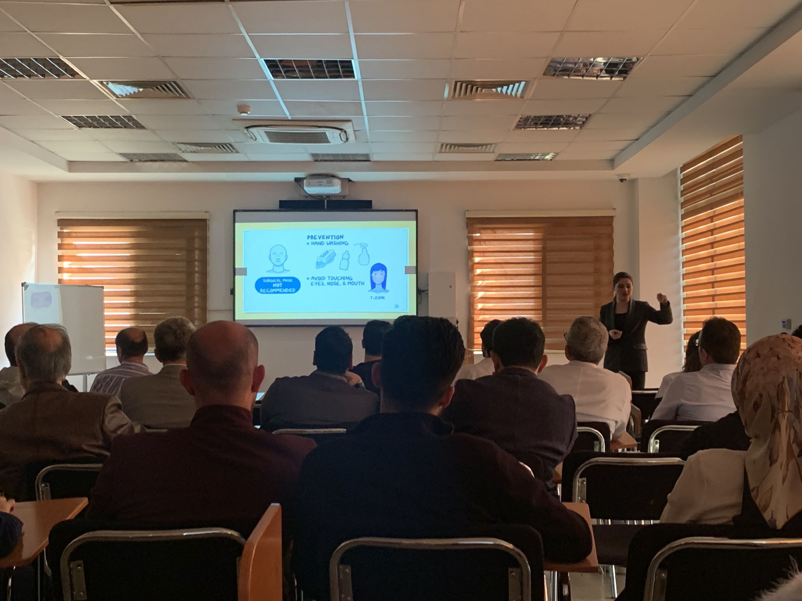 On February 27, 2020, TIU- Faculty of Dentistry organized a seminar for the Dentistry Staff under the title of “Corona Virus Awareness”. Ms.Sara Bahram, a research assistant at the Dentistry Faculty presented the seminar, in which she discussed the history of the corona virus, the development of (COVID-19) and its risk and she explained the means of protection that all individuals including Dentist should follow. The seminar aim was spreading awareness between the staff of Dentistry Faculty by giving them enough information about the risks and prevention while reassuring them to not panic or get stressed, as it is clear that stress has a negative effect on the immunity of the human being.