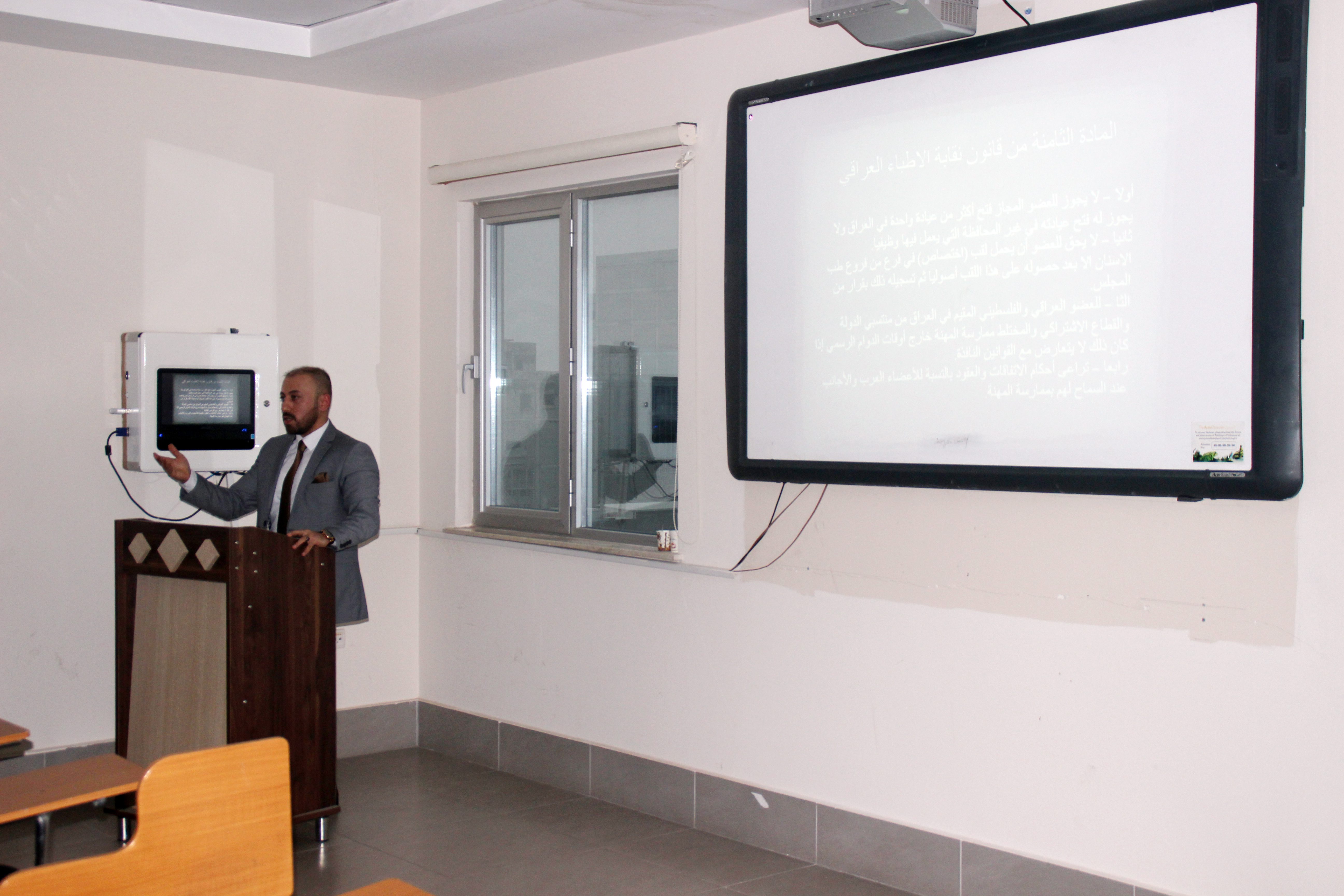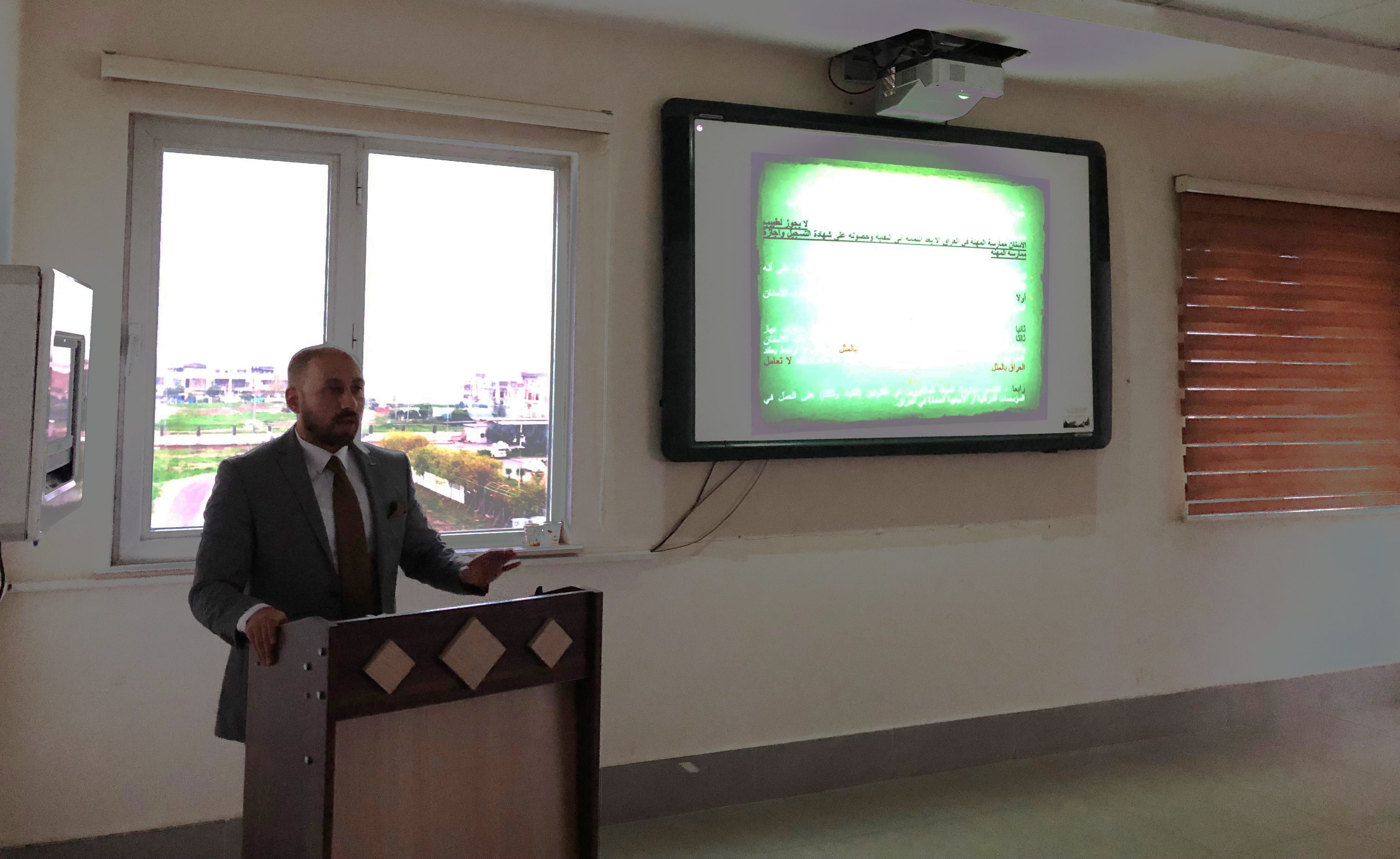 On Thursday 12-18-2018 in hall-4 at 4:00 pm in Dentistry building a seminar held by Dr. Imad Fattah who is a lecturer in law department, about the responsibility of penal for Medicine Doctors,