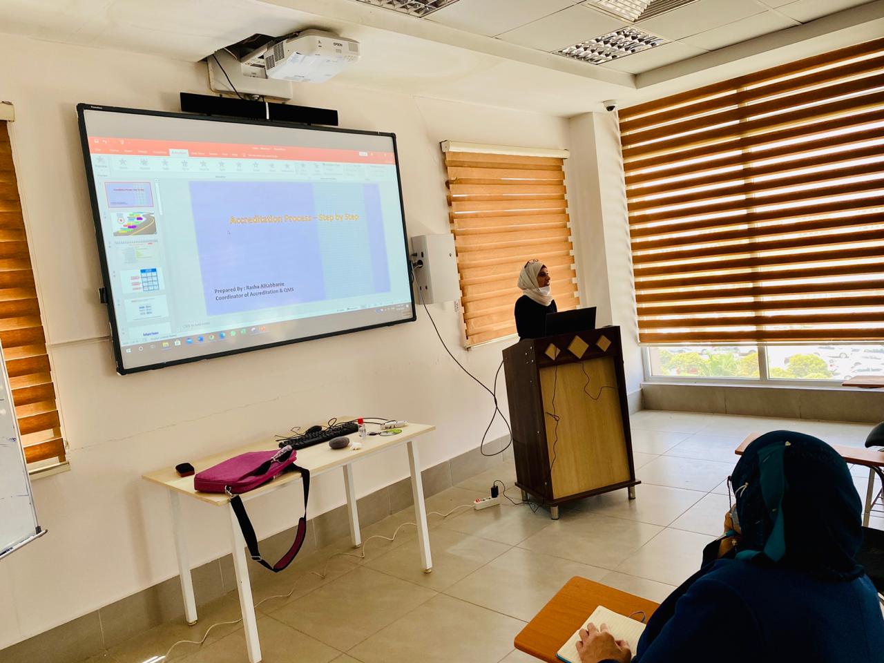 As the Dentistry Department has started the procedure of international accreditation for its bachelor program, a self-report that gives an evidence of its compliance with the accreditation standards shall be prepared. Therefore, comprehensive data about the taught courses, the teaching methods, the workload, and other related data shall be acquired. For that, a national workshop was decided to be conducted in the faculty to explain and discuss the methodology and the technique of Accreditation Data preparation. Subjects that were discussed were: