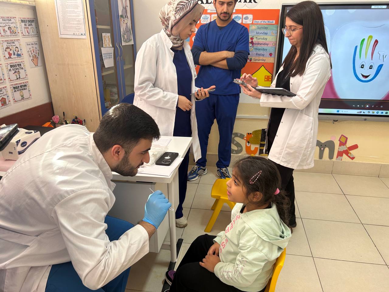 The project was under the supervision of Dr. Bushra Rasheed, Head of Pedodontics Department at Faculty of Dentistry. The students were under the supervision of Dr. Sham Yaqoub, Dr. Haneen Mudhar and Dr. Iman Hayder. Twelve students from the 4th and 5th stage participated in carrying out this project.