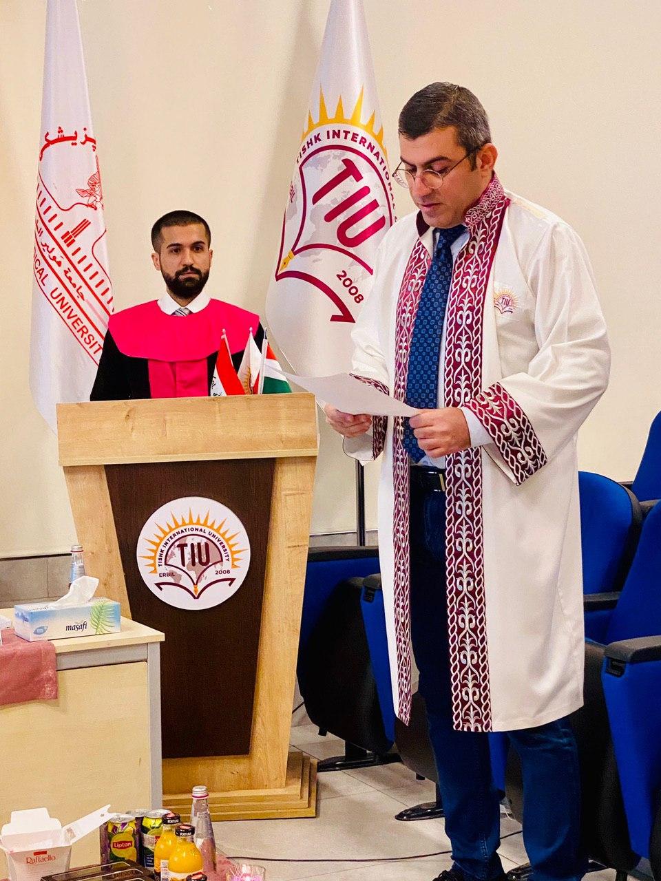 Dentistry Faculty in Tishk International University (TIU) started the first Joint Master Program in collaboration with Hawler Medical University (HMU) in April ,2018. On September 1, 2020 , the eleventh master defense session of the Joint Program was held in the presence of Dr.Duran Kala , the Dean of Dentistry Faculty -TIU , Dr.Rebuar Fadhil , the chief of Postgraduate Studies office-TIU , Dr. Diyar Khalid , the chief of Postgraduate Studies office-HMU and master defense committee members.