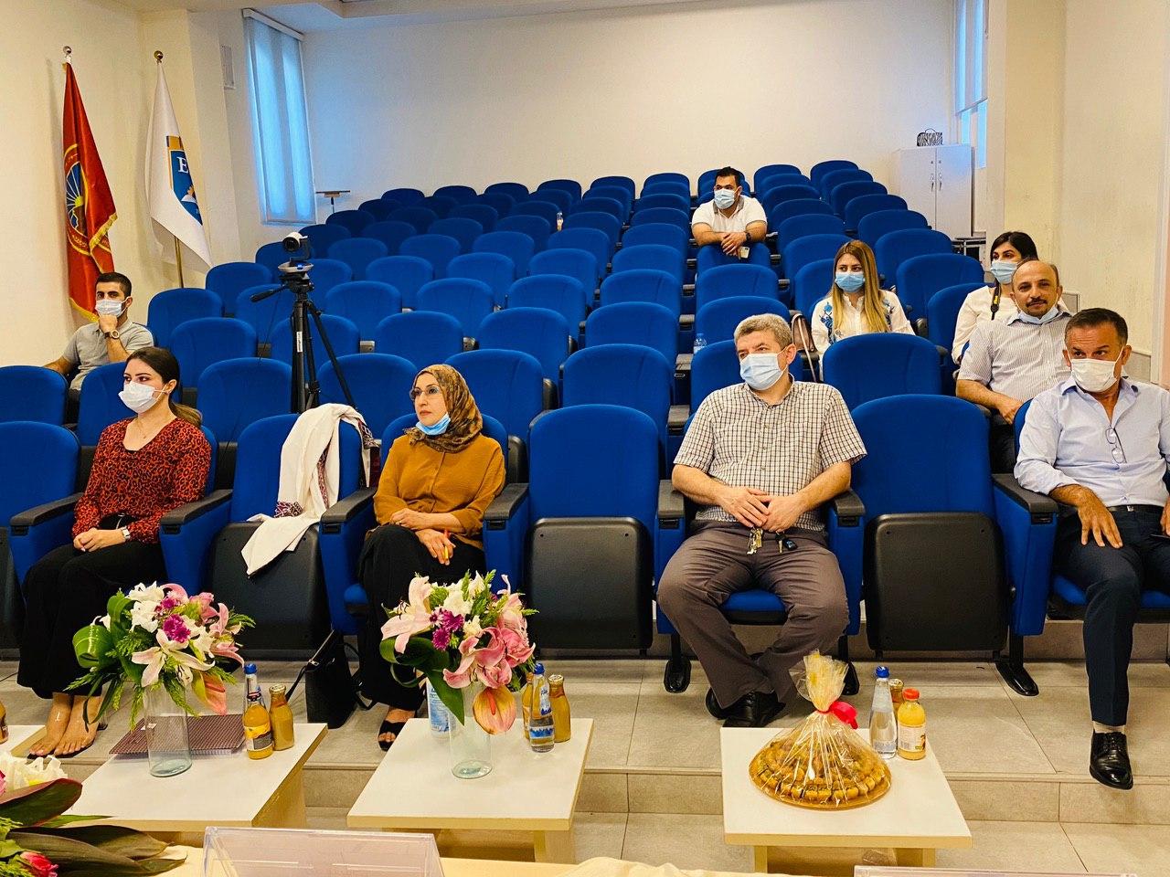Dentistry Faculty in Tishk International University (TIU) started the first Joint Master Program in collaboration with Hawler Medical University (HMU) in April ,2018. On August 26, 2020 , the Ninth master defense session of the Joint Program was held in the presence of Dr.Duran Kala , the Dean of Dentistry Faculty -TIU , Dr. Diyar Khalid , the chief of Postgraduate Studies office-HMU and master defense committee members.