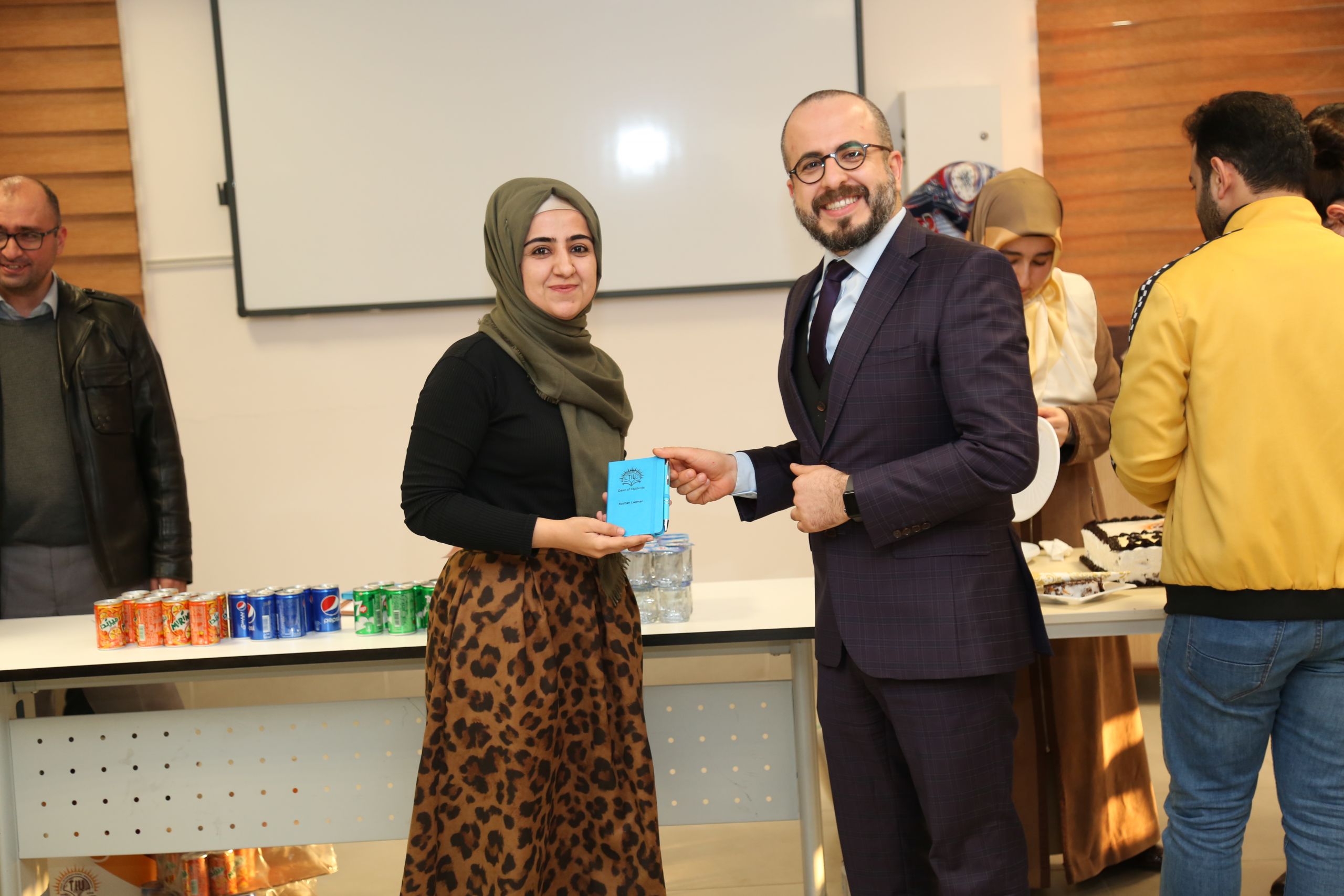 In the beginning, Dr.Duran Kala welcomed the staff and wished them a year full of success and achievements and thanked them for their great role in serving the faculty. Then he distributed certificates of appreciation to the staff members that participated in the social activities. Finally, cake and special gifts that were prepared by the Dean of Students office were given to all the staff as an appreciation.